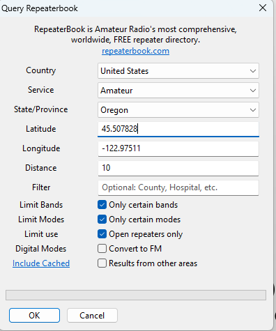 With this file open, click ‘Radio’ -> ‘Query Data Source’-> ‘Repeaterbook.com’.